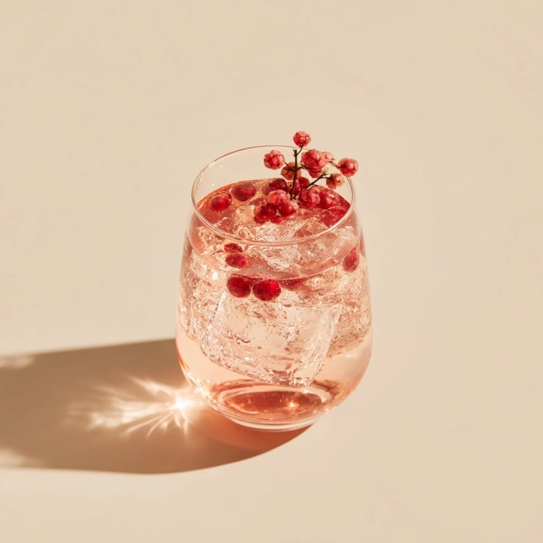 오미자의 다섯 가지 맛과 향이 루비처럼 빛나는 우아한 스프리츠